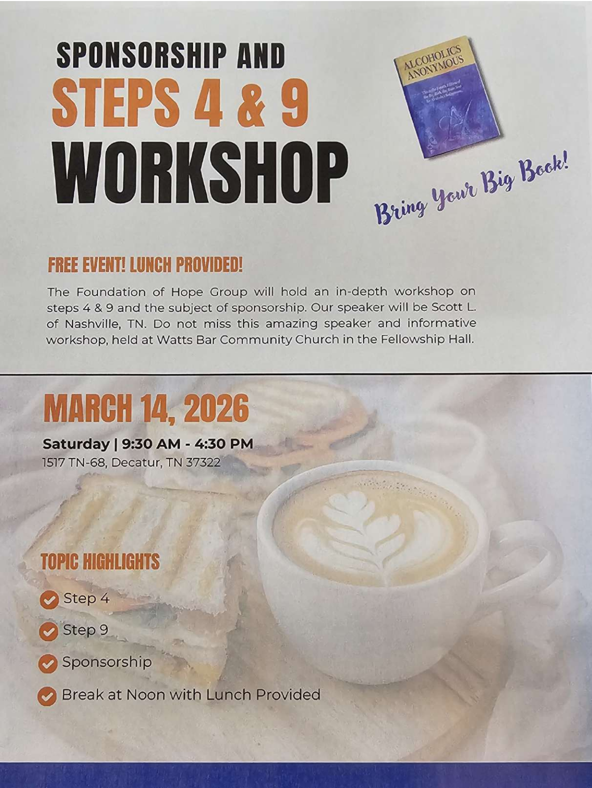 The Back to Basics Group will hold its monthly Speaker & Sobriety Birthday Celebration on Saturday, March 7, at 301 Oak Ridge Turnpike, Oak Ridge, TN.