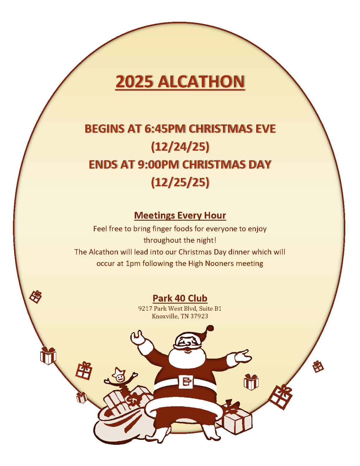 Monthly open AA speaker meeting with pizza, fellowship, a guest speaker, and sobriety birthday recognition. Held the first Saturday of every month in Oak Ridge.