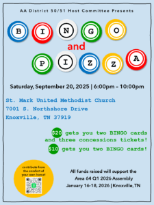 Get ready for an exciting lineup of sober social events this fall! The AA District 50/51 Host Committee has planned three fantastic fundraising events to support the upcoming Area 64