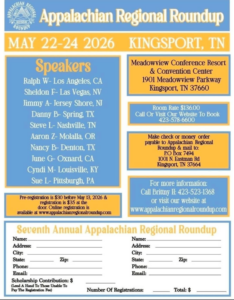 Seventh Annual Appalachian Regional Roundup, May 22–24, 2026, in Kingsport, TN. Speakers, fellowship, and recovery.